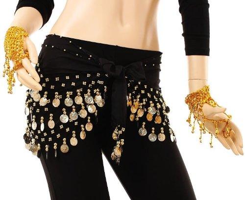 ベリーダンス衣装 ヒップスカーフ コイン (黒)