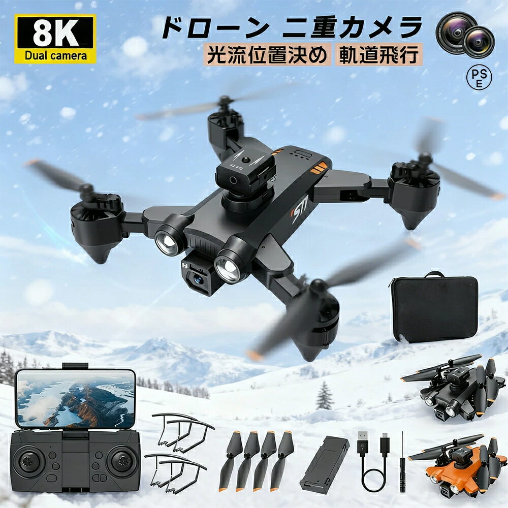 商品情報モデルS11バリケード回避ドローンカラーブラック、オレンジ折りたたみサイズ15.5×13.5×8.5cm展開サイズ30×30×8.5cm飛行システムインテリジェント回避/光流ホバリングレンズスマート8K デュアルカメラ航続ボディ約25分バッテリー3.7V2500MA信号2.4G距離約3000m【2025年最新モデル】ドローン カメラ付き 小型 8K高...
