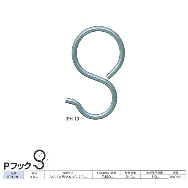 ニッサチェーン 鉄 Pフック IPH-19 ユニクロ 線径3.0mm 200個入