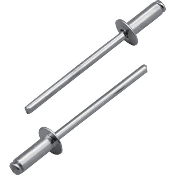 商品画像はイメージ画像です。実際とは異なる場合がございます。 特徴 ●豊富なサイズで広範囲の作業をカバー! ●一般板金作業・冷暖房ダクト工事・建築・サッシ・内外装工事に広く使われています。 ●下穴径:4.9mm ●軸径:4.8mm ●頭径:9.6mm ●頭高:1.5mm ●マンドレル径:2.90mm ●フランジ長:7.2 ●カシメ厚:1.6〜3.2 ●剪断強...