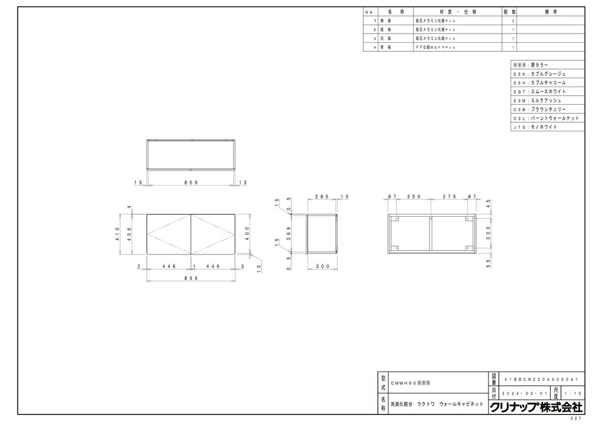 【CMWH90※】 《TKF》 クリナップ ラクトワ ウォールキャビネット 幅90cm ωγ0