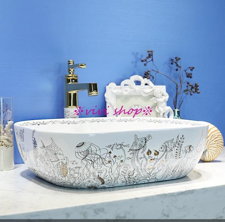 A0462680121F154豪華洗面ボウルセット陶器洗面台 トイレ 手水鉢 手洗器 手洗...