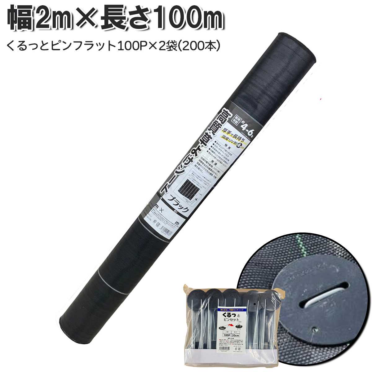 高質草よけシート ブラック 2m×100m + くるっとピンフラットセット 100P×2袋...
