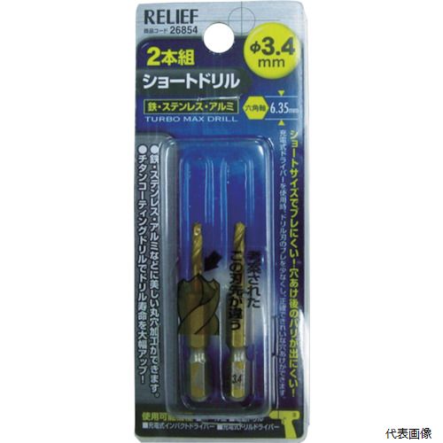 イチネンアクセス 26854 RELIEF 2本組 六角軸ショートドリル 3.4mm
