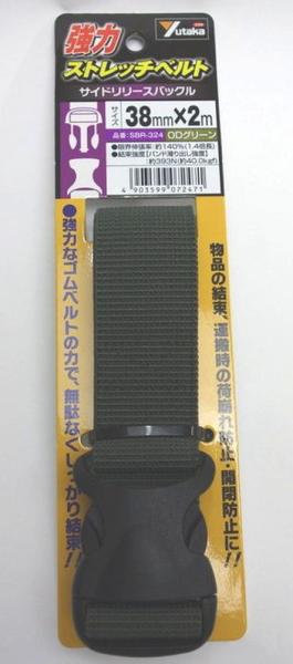 ユタカメイク 強力ストレッチベルト 38mm×2m バックル ODグリーン 63-2022-10