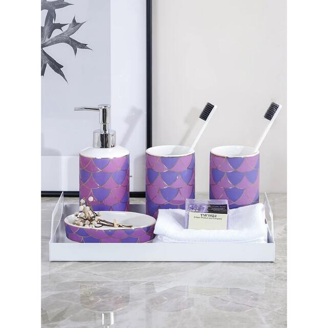 <セット内容>ディスペンサーx1点歯ブラシスタンドx1点石鹸置きx1点カップx2点トレーx1点材質: プラスチック お客様のご覧になっているモニター等により多少色が異なる場合がございます。あらかじめご了承ください。 複数ご注文の場合やお急ぎの場合は必ず事前に納期のお質問をお願いいたします。 サイズの誤差は多少発...