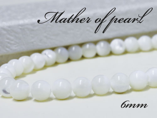 天然石 マザーオブパール 白蝶貝 丸玉6mm 連売 1本 約36cm パワーストーン ...