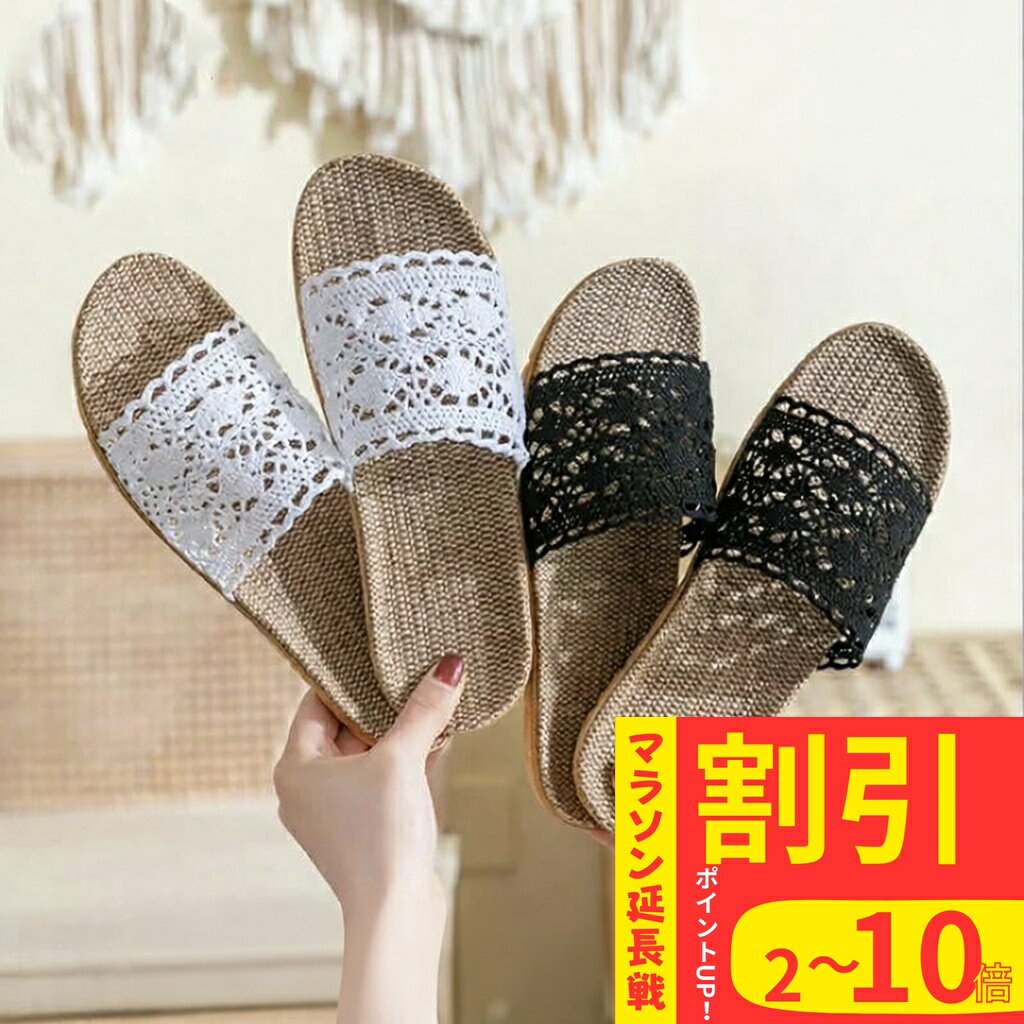 スリッパ レディース 室内 全7色 麻 洗える レース 刺繍 22~25.5cm かぎ針...