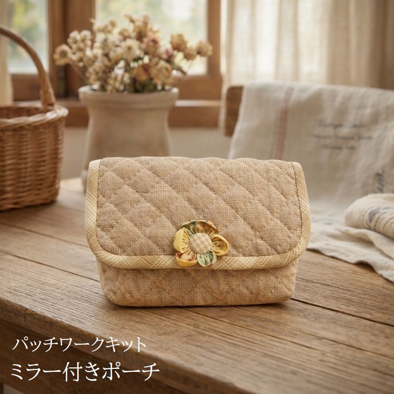 パッチワークキット ミラー付きポーチ ・お花 コスメポーチ ハンドメイド 手...