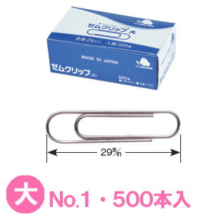 商品名 ゼムクリップ 大 No.1 29mm (500本入) 品番 1-500 仕様 ●抜群のバネ力。 ●硬線を使用しております。 ●紙箱入り。 規格 No.1(大) サイズ 材質 スチール 入数 500本 メーカー名 マンモス