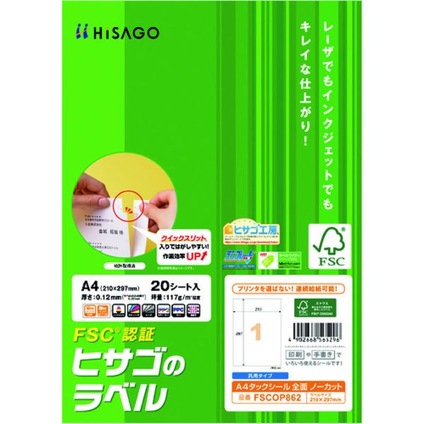 【メーカー在庫あり】 ヒサゴ(株) ヒサゴ FSC認証 A4タックシール 全面 FSCO...