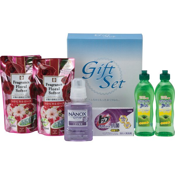 こちらの商品の包装(ラッピング)について○ラッピング・のし承ります(有料)。のし名入れはご注文時備考欄にご記載下さい。注文者名とお届け先名が異なる場合は「(注文者名)様ご依頼分」と送り状に記載して発送いたします。「高い洗浄・消臭力」のトップNANOXワン液体洗剤に柔軟剤や台所洗剤などをセットしました。【...