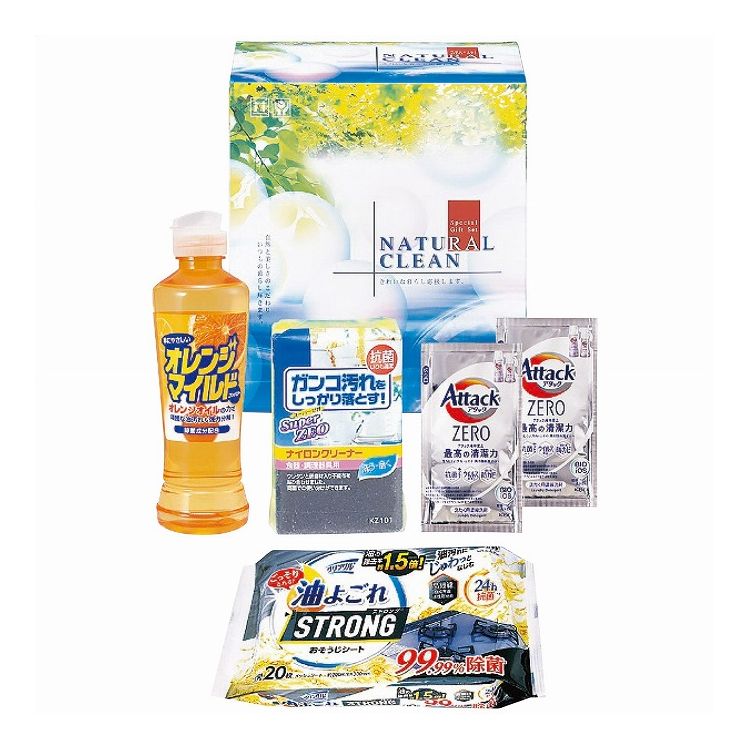 商品詳細 ■毎日使うものだから。もらって嬉しい必需品です。 商品名/洗剤おくさまセット 内容/セット内容/花王アタックZEROワンパック(10g×7袋)×2、キッチンリフレッシュコンパクト(270ml)・クリームクレンザー(400g)・キッチンブリーチ(600ml)・クリンクル油よごれおそうじシート(20枚)・リード冷凍も冷蔵も新鮮保存バ...