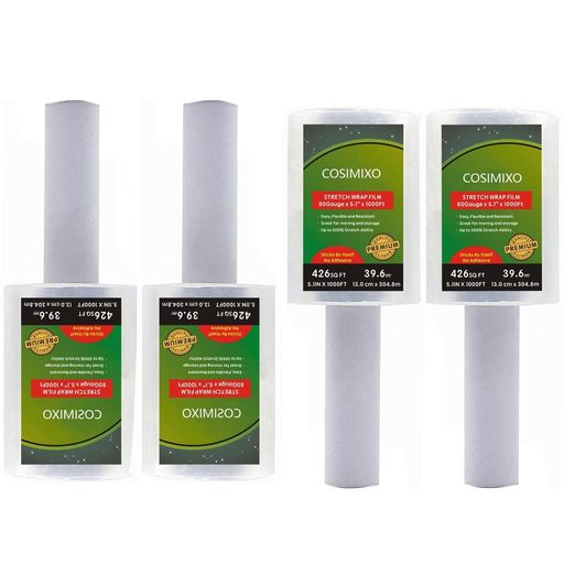 4ロール工業用マイクロクリアストレッチラップフィルム、厚さ80フィート、5.1インチ1000フィート、使いやすく環境に優しい紙管ハンドル付き 高品質の100%LLDPE素材で作られたストレッチフィルムは、手間のかからないパッケージングのための究極の選択肢です。透明、防水、防塵により、クラス最高の商品保護を確保し、輸...