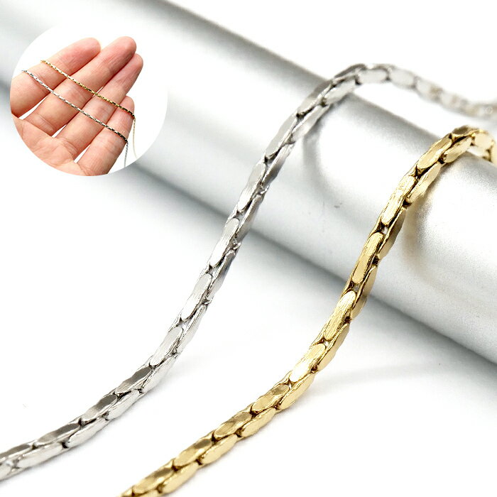 コーヒー豆をいくつも繋げたようなオシャレな形状のステンレスチェーン。 シンプル綺麗なDIY用ステンチェーンは金色ゴールドと銀色シルバーからお色も選べます。 高級感のある丈夫なステンレス素材のチェーンは、オリジナルのネックレスやアンクレット、チョーカーやブレスレット、ボディチェーンやメガネチェーンなどを...