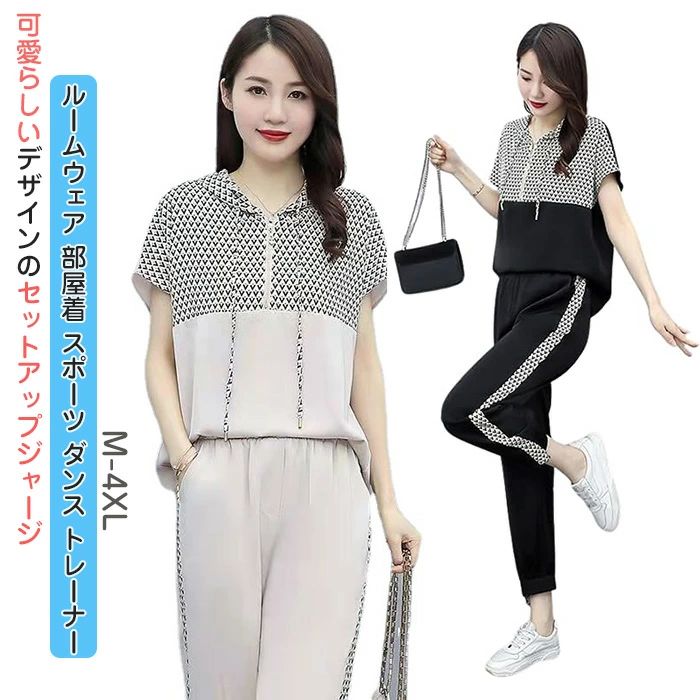 セットアップ レディース 半袖 上下2点セット フード付き パーカー スウェッ...
