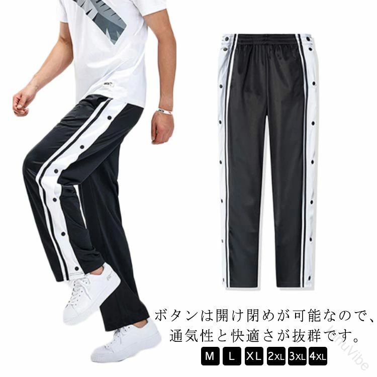 裾ボタン バスケットボールパンツ ジャージパンツ スナップボタン 長ズボン ...