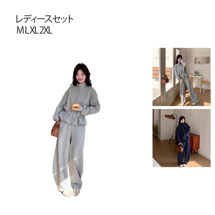 レディース セットアップ ペプラム ジャケット ジップアップ ワイドパンツ ...