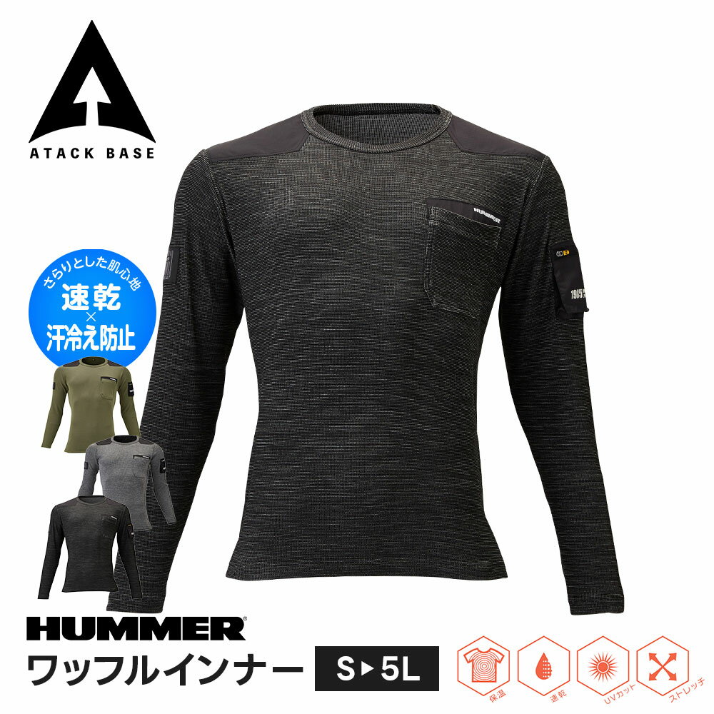 HUMMER 作業服 インナー シャツ メンズ 長袖 大きいサイズ 作業着 クルーネ...