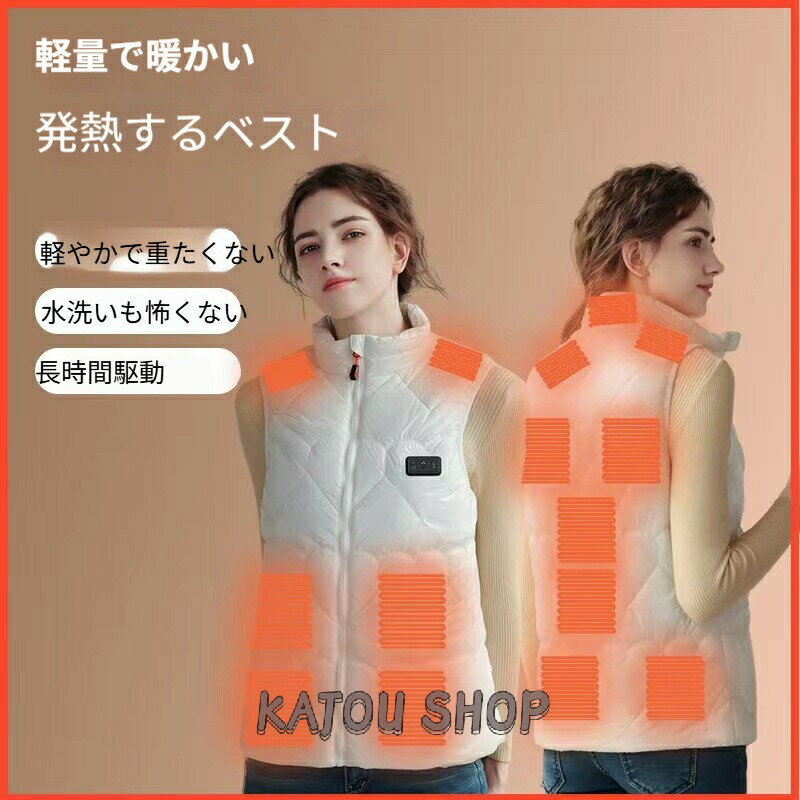 発熱機能付き 女性用 光沢スマートベスト 腰腹部肩集中保温 電気加温 防寒作...