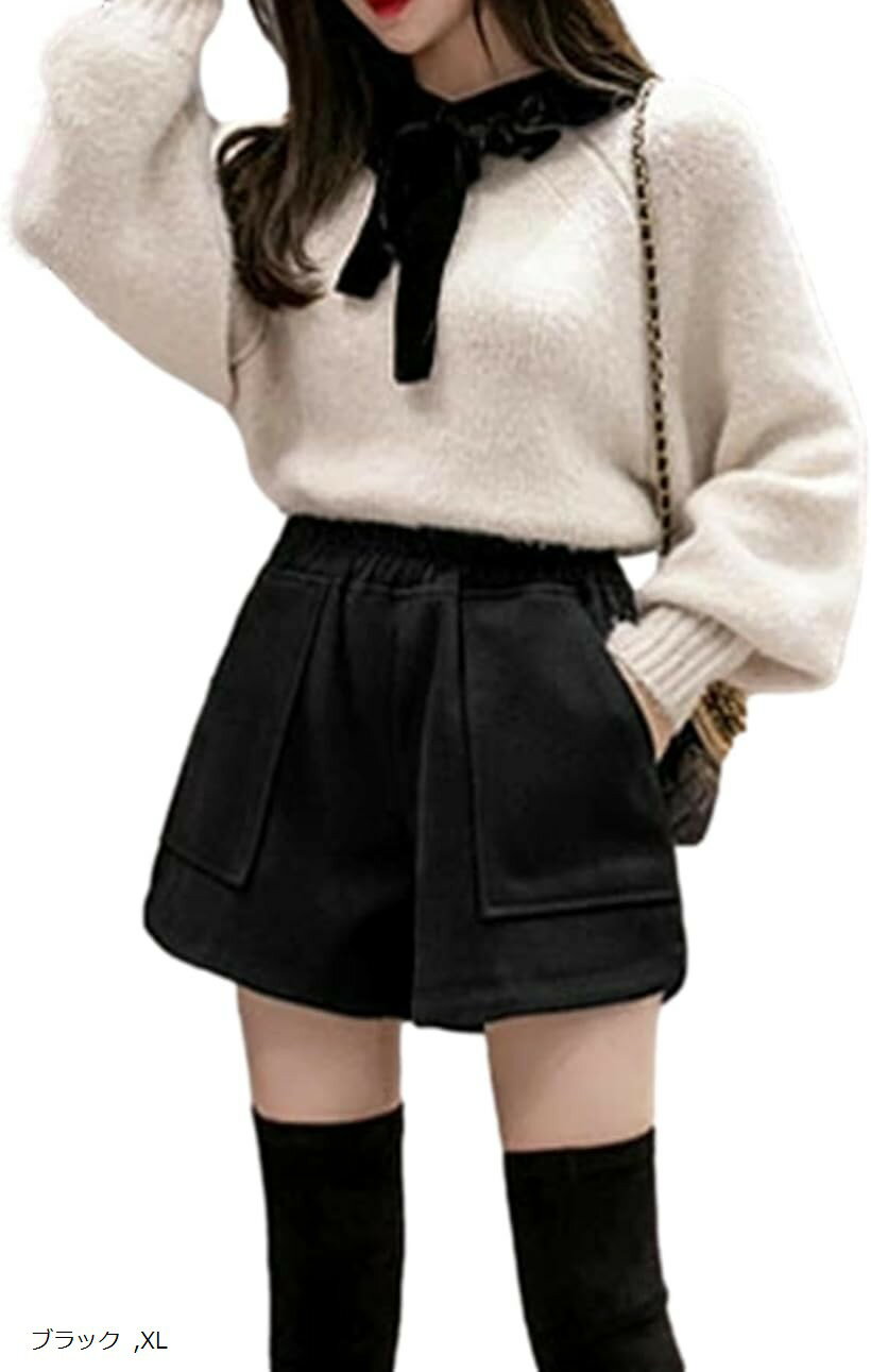 ショートパンツ レディース ハイウエスト Aライン フランネル 調 ウエストゴ...