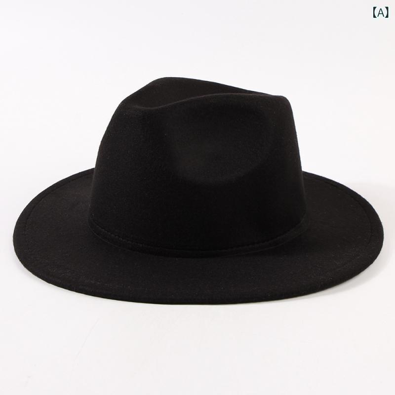 フェドラハット フェイクウール ウエスタン 無地 ポリエステル つば広 小顔...