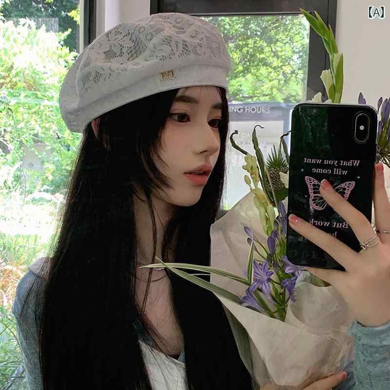 ホワイト レース 帽子 キャップ おしゃれ かわいい 夏 通気性 画家 韓国 ブ...