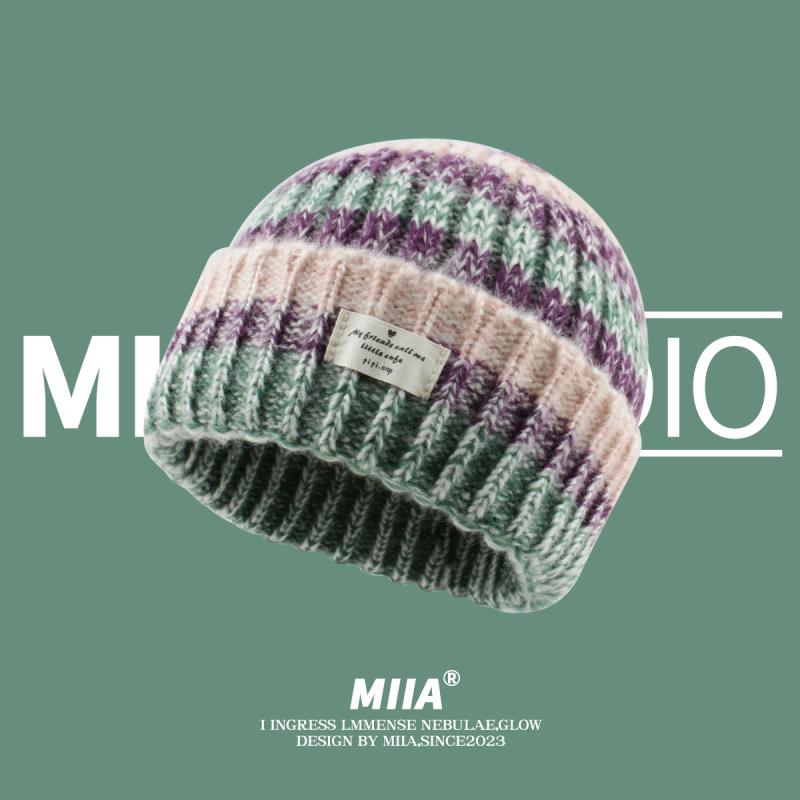 秋 冬 ニット 帽 混 色 ストライプ 帽 女性 暖かい 耳 当て 防寒 帽子 頭囲 ...