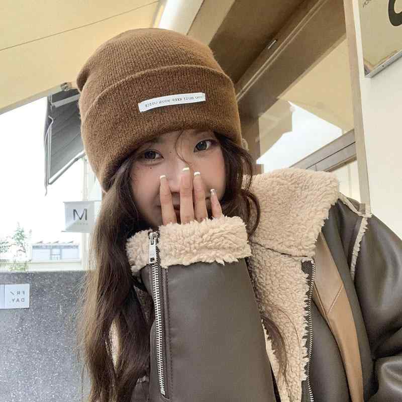 秋 冬 ニット ウール 帽 大きい 頭囲 文字 帽子 女性用 韓国 暖かい 耳保護 ...