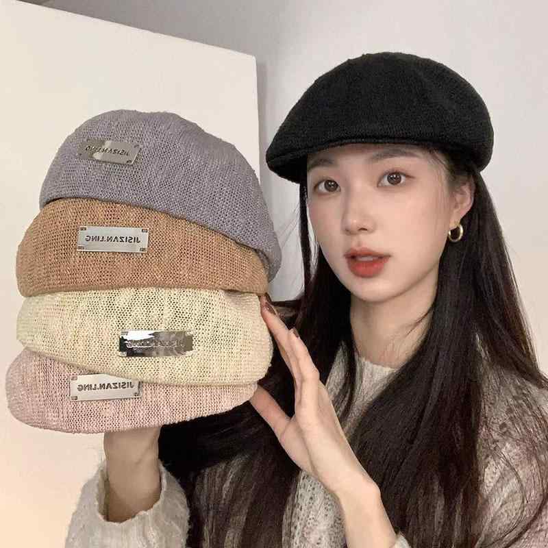 帽子 韓国 黒 ベレー帽 レディース 春夏 通気性 着 前方帽子 画家帽子