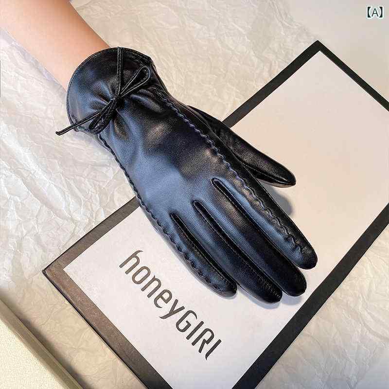 手袋 レディース 韓国ファッション グローブ 羊革 本革 シープスキン 蝶結び...