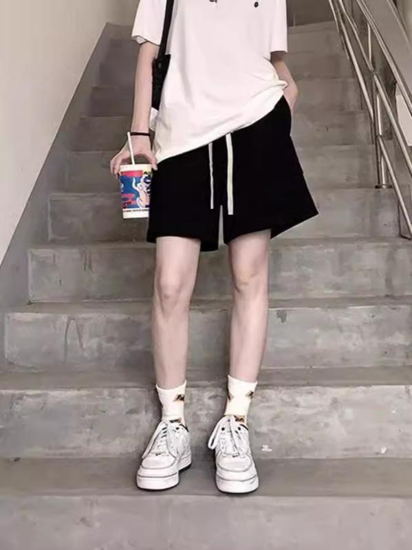 ・パンツ丈: 五分丈・腰タイプ: ハイウエスト・厚さ: 薄手・カラー: グレー, ブラック・サイズ: S, M, L, XL, 2XL・主な生地の成分: ポリエステル90-95%・スタイル: 日韓カジュアル, カジュアル・デザイン: ベーシック・伸縮性: 微ストレッチ・生地: ポリエステル・主な生地の成分2: ポリエステル90-95%・加工: アイロン...