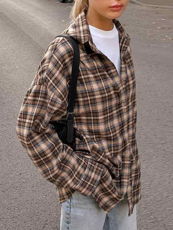 ・素材: ポリエステル、綿・柄: 格子柄・スタイル: カーディガン・袖丈: 長袖・フィット: ゆったり・着丈: ロング(80cm超100cm以下)・ネックライン: 襟付き・袖のタイプ: シャツ袖・特徴: ボタン・カラー: カーキ・サイズ: S、M、L・系統: 通勤・フロント: シングルブレスト・主な素材の含有量: 70〜80%・スタイル: アー...