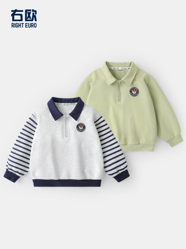 ・カテゴリ: 子供用トレーナー ・対象: 男の子 ・スタイル: カジュアル ・対象年齢: 3~8歳、身長100~140cm ・シーズン: 春秋 ・柄: ストライプ ・厚さ: 普通 ・袖丈: 長袖 ・留め具: プルオーバー ・フード: なし ・素材: 綿75% ・色: 草緑、白青 ・サイズ: 90cm、100cm、110cm、120cm、130cm、140cm
