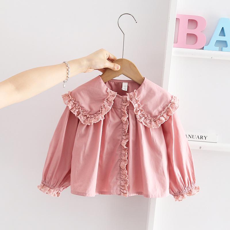 シャツ 女児 ベビー キッズ 子供服 長袖 襟付き 春秋 レース コットン 花柄 ...