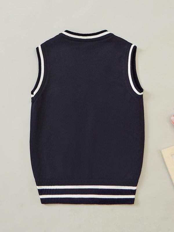 子供服 ベスト 男女兼用 ニット Vネック ストライプ 格子柄 スクール風 学院...