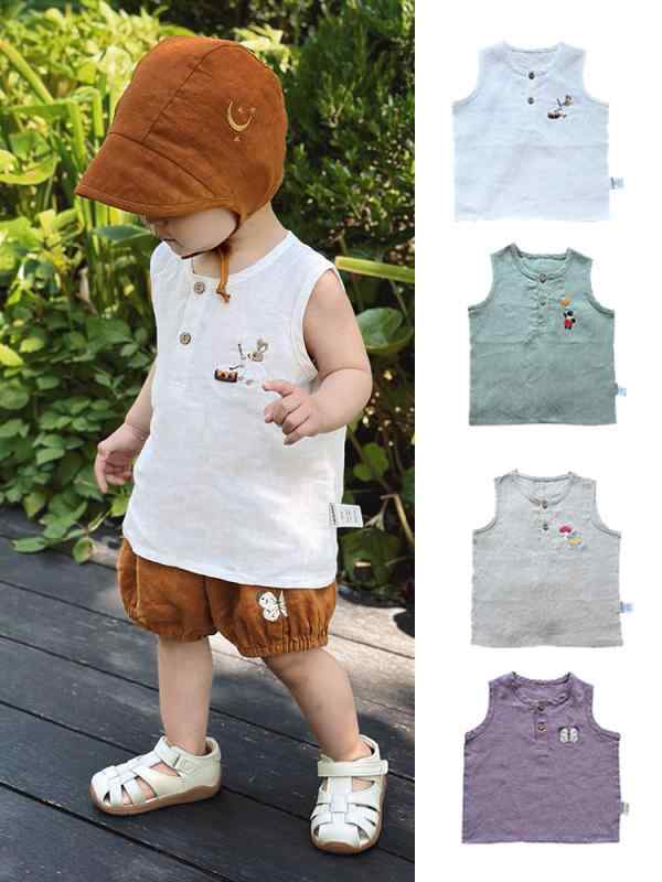 ベビー キッズ ベビー服 子供用 ノースリーブ トップス リネン 麻 通気性 薄...