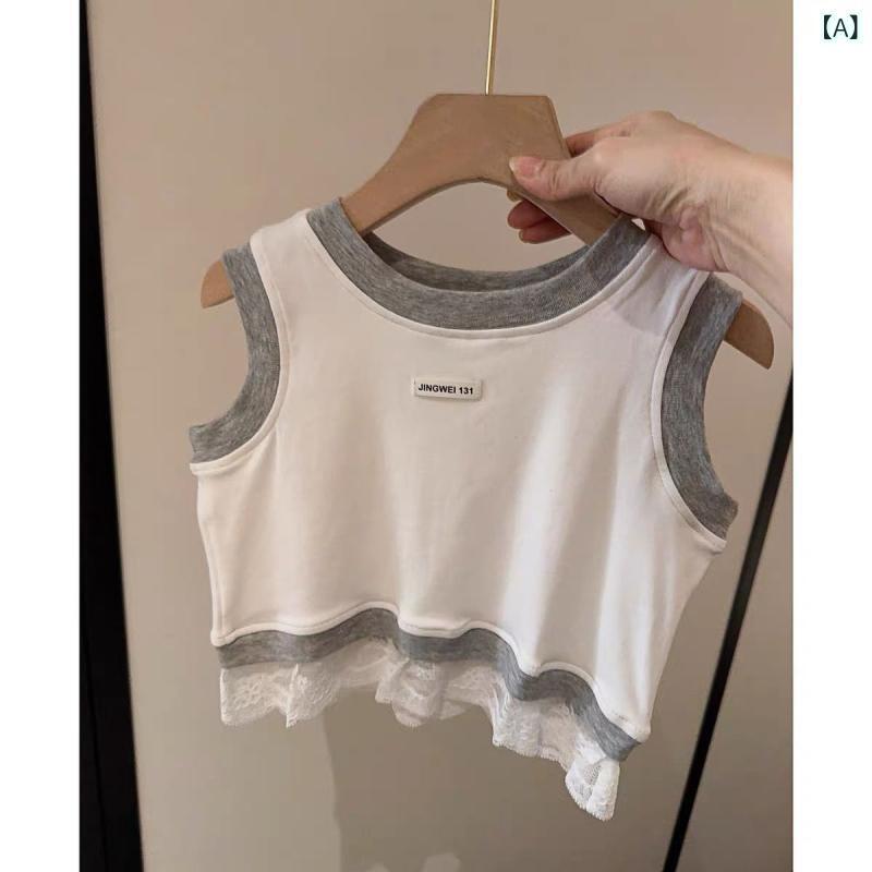 子供服 タンクトップ 女の子 夏 ノースリーブ かわいい レース フリル アル...