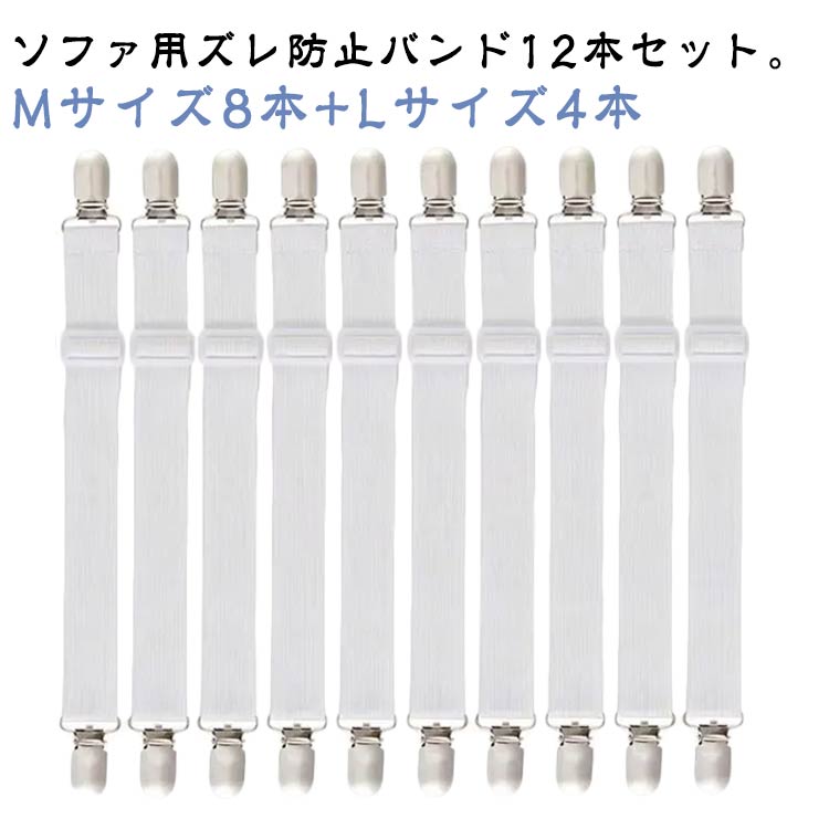 ソファ用ズレ防止バンド12本セット。Mサイズ8本+Lサイズ4本マルチカバーをソファの底部から背面でしっかり固定できるサスペンダー。ベルトはゴム製で伸縮性があり、金具で長さ調節も可能。カバーのズレを防止できます。ベルトはゴム製なので、ソファやカバーのサイズに合わせてピッタリとフィットさせ、カバーのズレを防...