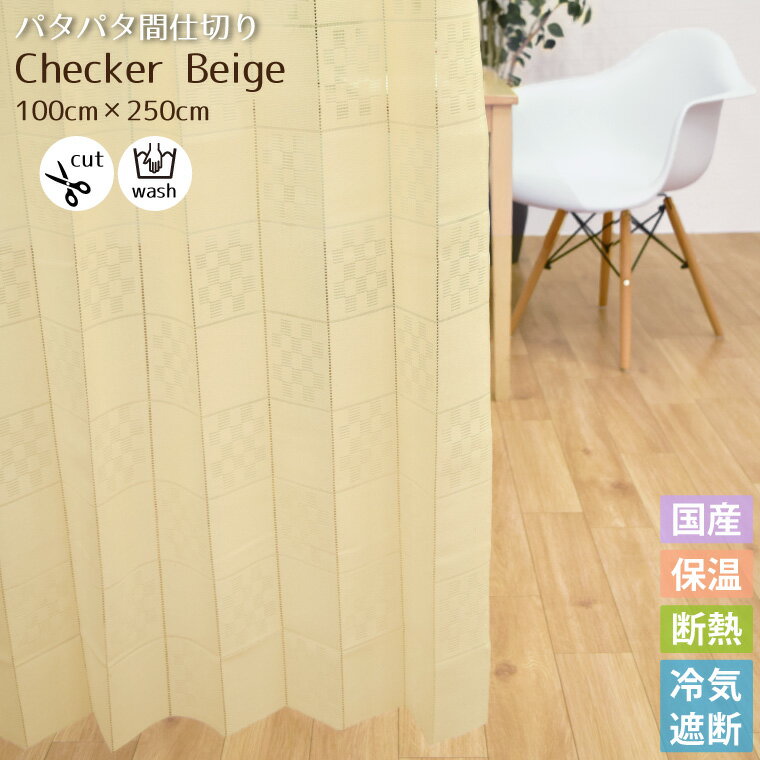 間仕切り アコーデオン パタパタカーテン チェッカー ベージュ アイボリー ...