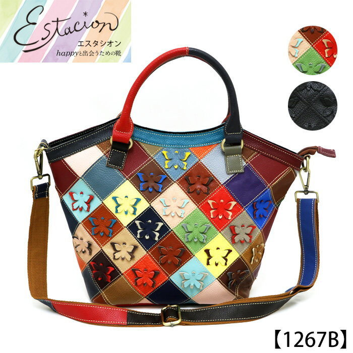 【送料無料】Estacion~エスタシオン~・マルチ蝶々モチーフ本革2wayバッグ...