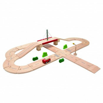 運輸システムごっこができるロードシステムセットロードシステムセットで運輸システムごっこをしましょう。27本の道路ピース、橋、車、街路灯、そして4つの茂みアクセサリ(計34ピース)から成っています。シティ系ごっこ遊びにおすすめのセットです。プラントイの玩具に使用されている木材はすべて、廃材になったゴムの木...