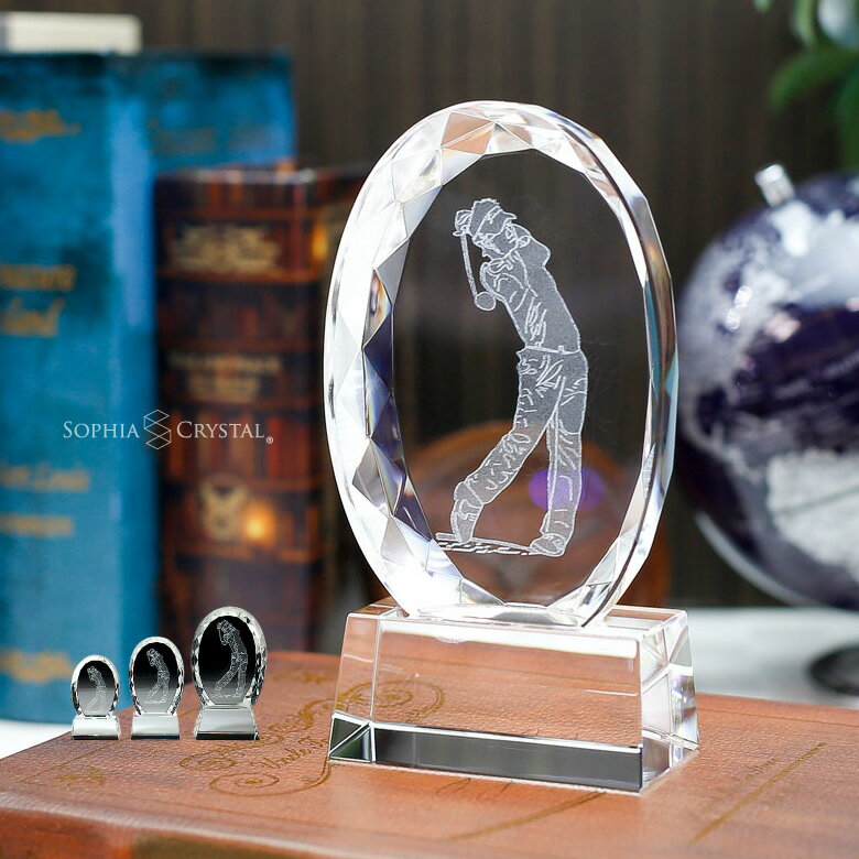クリスタル ゴルフ トロフィー 810 名入れ オリジナル 記念品 表彰状 退職記...