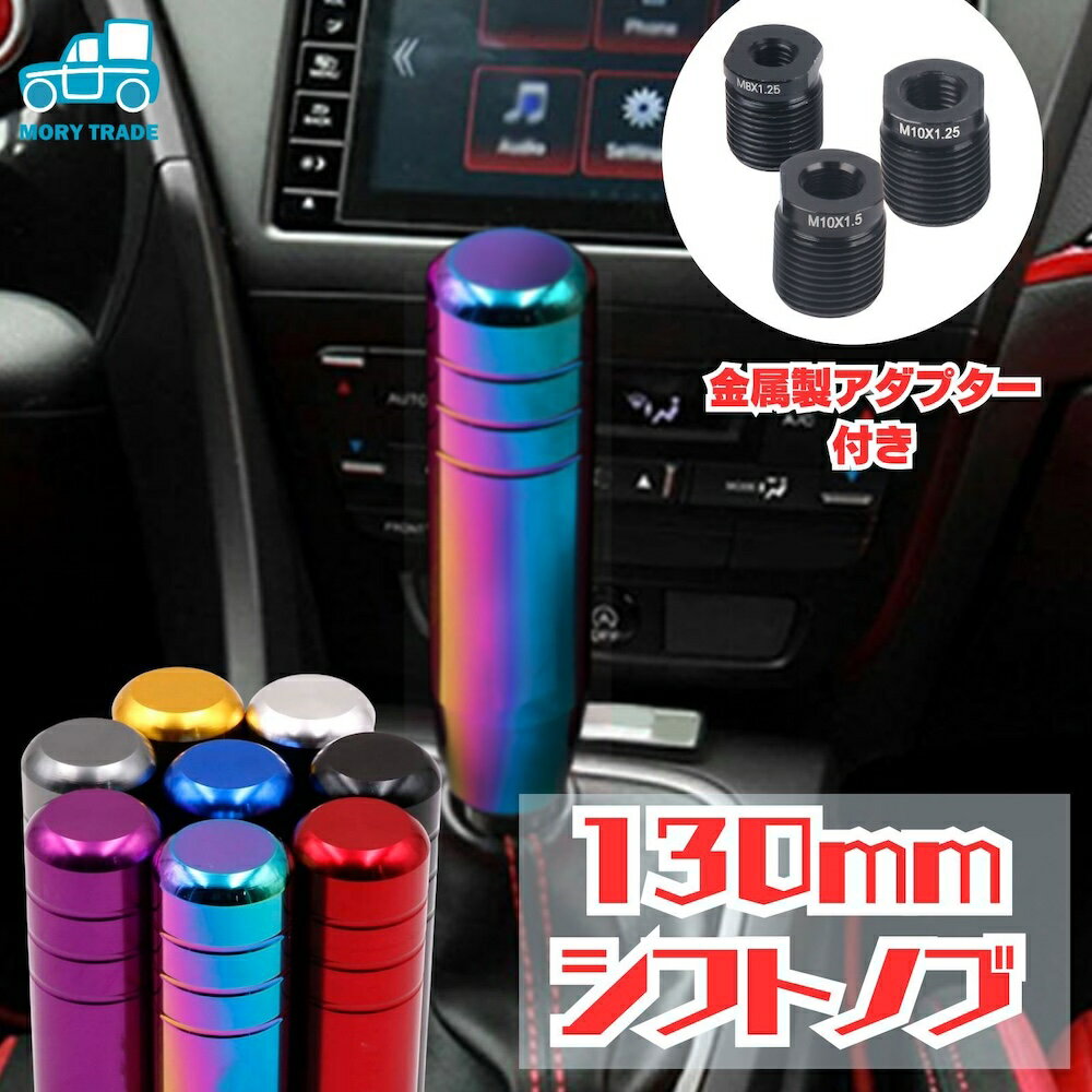 商品概要:MORYTRADE アルミ シフトノブ ロング 130mm 特徴 ●操作性抜群の130mmロング設計。テコの原理でシフトチェンジが劇的にスムーズになります。 ●高品質アルミ合金を採用。車内の雰囲気を格上げするスタイリッシュなデザイン。 ●6種類のアダプター付属で、軽トラから乗用車まで幅広い車種に汎用対応。 ●純正ノブと...