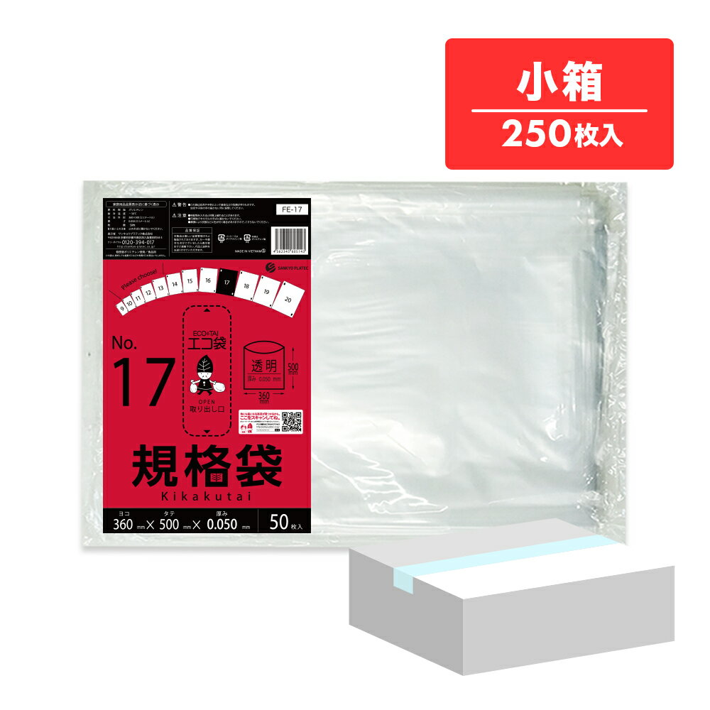 【小箱販売】FE-17kobako 規格袋 17号 0.050mm厚 50枚x5冊 極厚タイプ/ポリ...