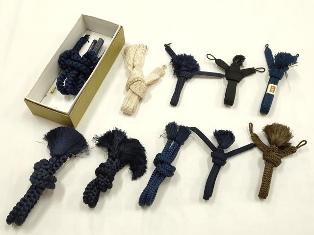 平和屋着物▼男性 和装小物 羽織紐まとめて10点 夏物 紺・白・茶 切り房...