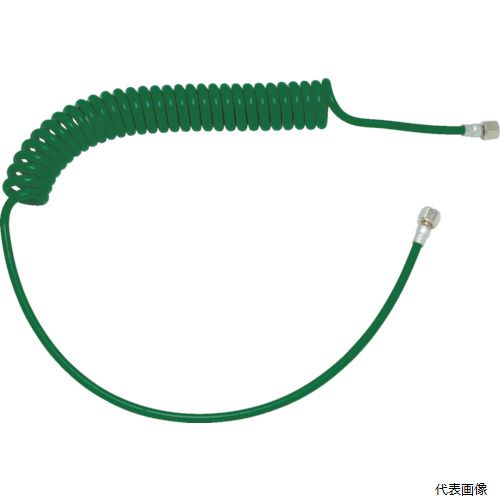 【特長】 ●伸縮性が強く、作業性が優れています。 【用途】 ●エアー工具との組み合わせ。 ●色:緑 ●外径(mm):8 ●内径(mm):5 ●使用範囲(m):6 ●全長(mm):1165 ●コイル径(mm):40 ●コイル長(mm):520 ●最大使用寸法(m):6 ●ホース取付口:G1/4 ●使用流体:圧縮空気 ●ホース内径×外径(mm):5×8 ●ホース外径×内径(mm):8×...