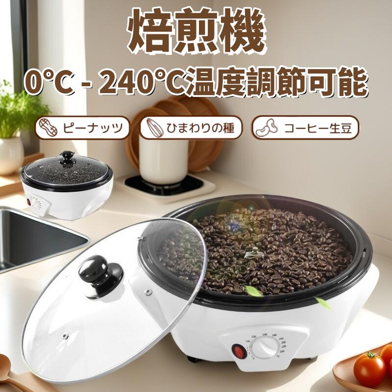 食品グレード素材のコーヒー焙煎機、操作が簡単で、ワンキースタート、自家焙煎ならではの香りを心ゆくまで楽しめます 【0-240℃焙煎】非常に簡単、異なる材料に応じて、異なる温度を選択します 【クリアガラスカバー】焙煎中の豆の様子をいつでも観察できます 【多機能】コーヒー焙煎だけではなく、大豆、ピーナッツ、ス...