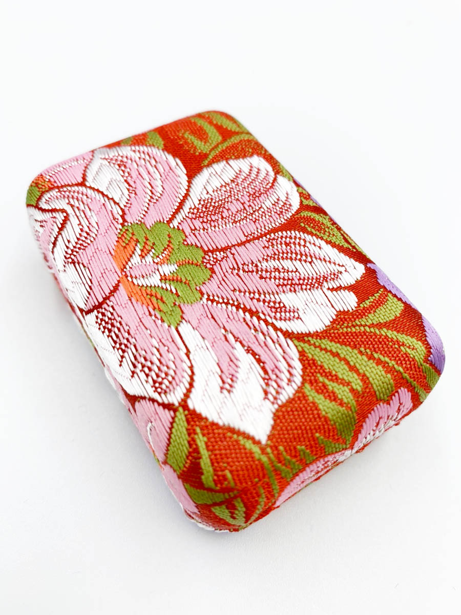 【 爪駒入れ 錦 中 】銀フチ有り 三味線 琴 箏 錦柄 中サイズ