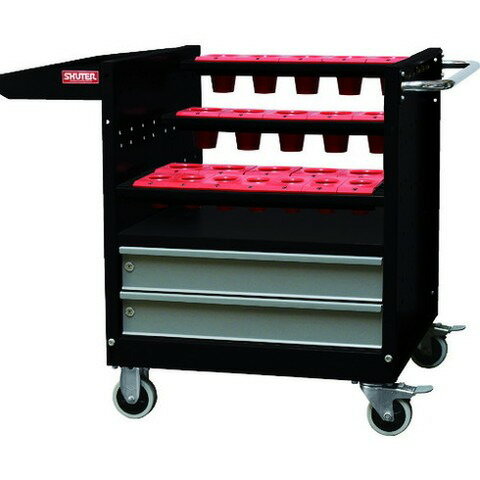 【商品詳細】●ツールホルダーベンチが25度まで回転できるので、収納・取り出ししやすいツーリングワゴンです。●ツーリング工具の効率的な保管に。●色:ブラック●収納ホルダ数:TW-BT-30 32個●間口(mm):1002●奥行(mm):650●高さ(mm):810●均等積載量(kg/段):25●最大積載量(kg/台):200●キャスター径(mm):100●引出し(段...